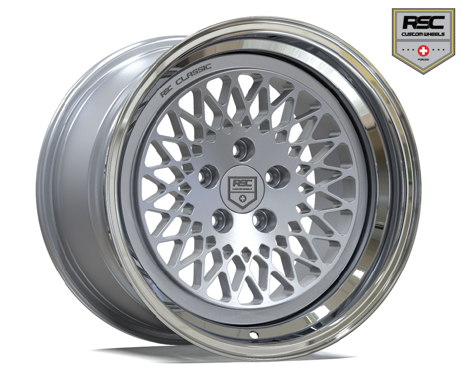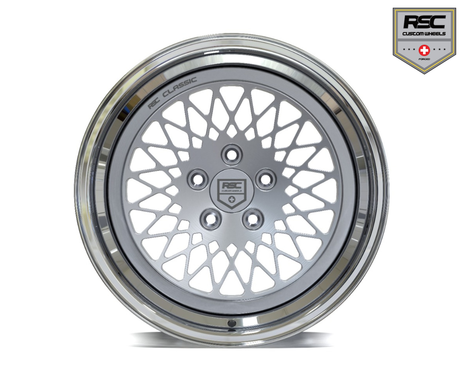Shown version: RSC Classic IMSA Three Piece in 10×15″ Offset 23 / Surface: Rim Star Brushed & Clear Coat / Rim Bed Polished